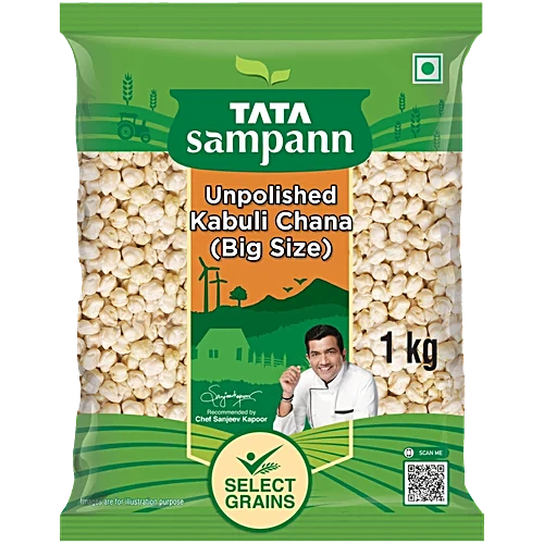 Tata Sampann Kabuli Chana / Kabuli Kadale is carefully sourced and processed to ensure superior quality and taste. These large, uniform chickpeas cook evenly to a firm yet soft texture, making them perfect for preparing chole, curries, salads, and traditional snacks. Rich in protein and fibre, this kabuli chana is a nutritious addition to everyday meals, offering wholesome goodness and authentic flavour in every serving.