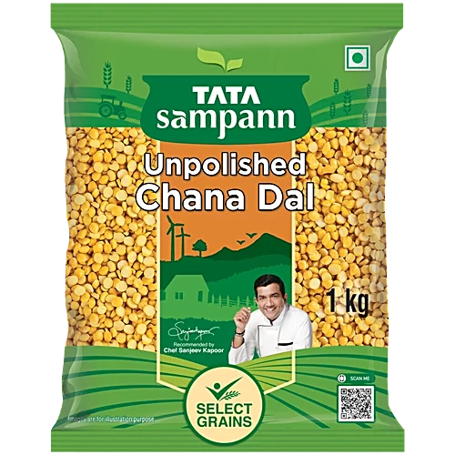 Tata Sampann Unpolished Chana Dal is carefully sourced and minimally processed to preserve its natural goodness. The unpolished dal retains fibre and essential nutrients, making it a healthy choice for daily meals. It cooks evenly to a soft yet firm texture, making it perfect for preparing traditional dals, curries, and a variety of Indian snacks with authentic taste and consistent quality.